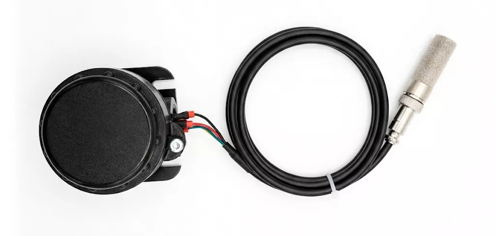 Its compact enclosure allows it to be placed discreetly in a wide range of environments, while the external probe—connected via a durable 1-meter cable—adds flexibility in measurement. The probe is designed to handle airflow-based sensing while protecting the sensing element from moisture, making it suitable for both indoor and outdoor use.